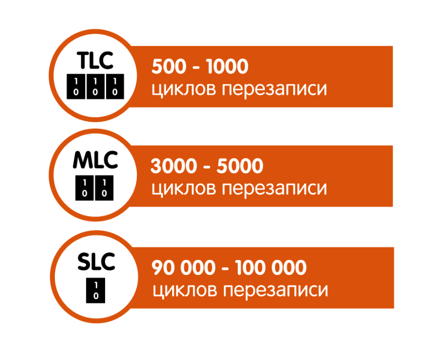 Для каждого типа флеш-памяти имеется ограничение циклов перезаписи. Это число определяет, сколько конкретно раз можно изменить значения ячейки флеш-памяти, прежде чем ее износ будет представлять опасность для данных. Показатель варьируется в зависимости от типа памяти: SLC, MLC или TLC.