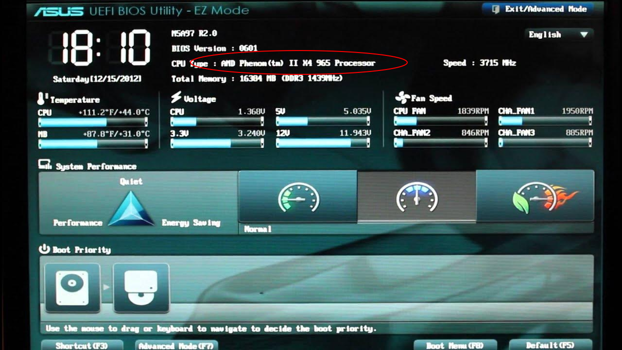 Посмотреть какой установлен процессор возможно в BIOS-е материнской платы. Как зайти в BIOS писали в этой статье.