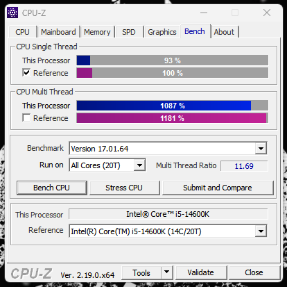 У утилиты существует большая база разных тестов чтобы сравнить свой показатель с показателями других людей. Для запуска нажмите кнопку "Bench CPU", тест идет меньше минуты. Также можете внизу выбрать в качестве референса процессор чтобы сравнить свой с ним. Отличие до 10% - допустимо, так как референсы тестируются на самых дорогих и качественных материнских платах и лучшей памяти, вы уверенны что ваши комплектующие сопоставимы?
