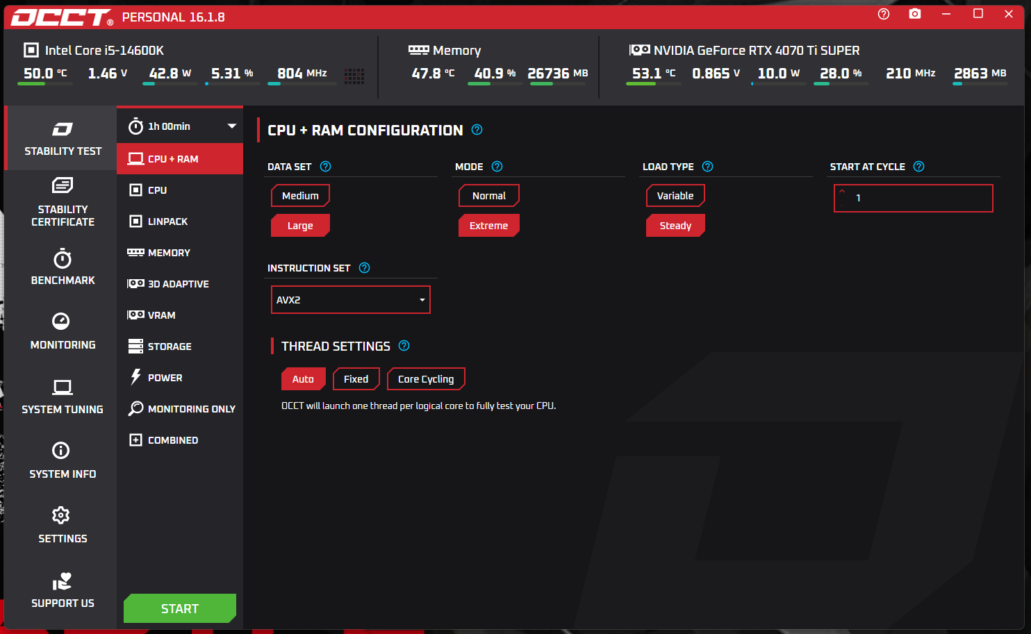 3. OCCT - универсальная программа для тестирования