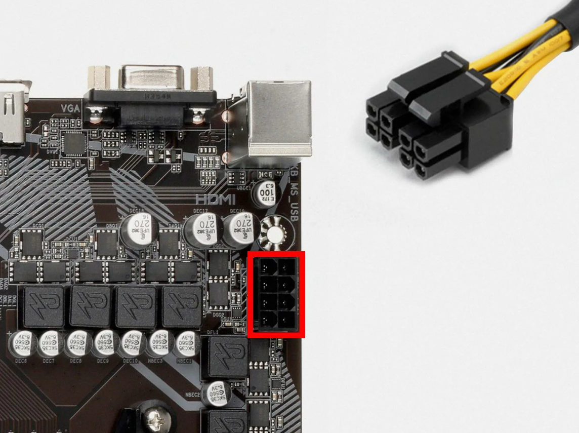 Перед первым запуском проверьте, что питание процессора подключено и кулер крепко установлен на материнской плате.