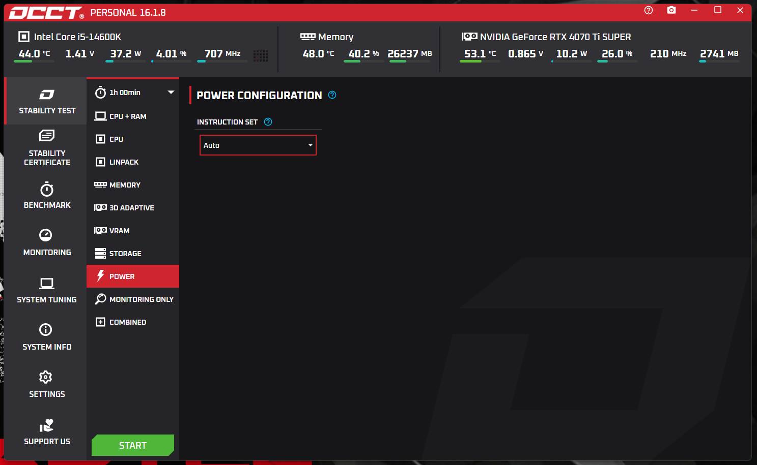 Жесткий прогрев - POWER тест в OCCT