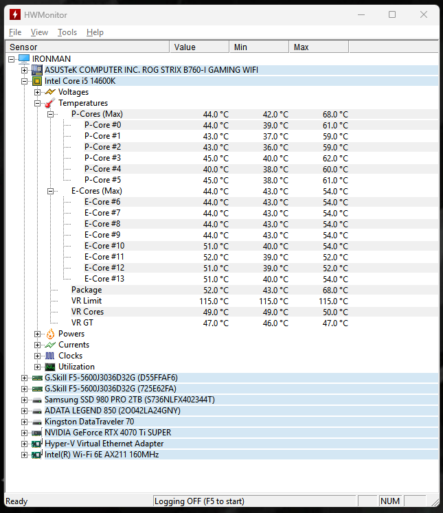 1. HWMonitor - утилита для отображения температур, в том числе и процессора. Утилита способна отобразить множество подробной информации о температурах и напряжении всех компонентов, но у программы нет встроенного бенчмарка или стресс-теста, она лишь показывает информацию со всех датчиков.