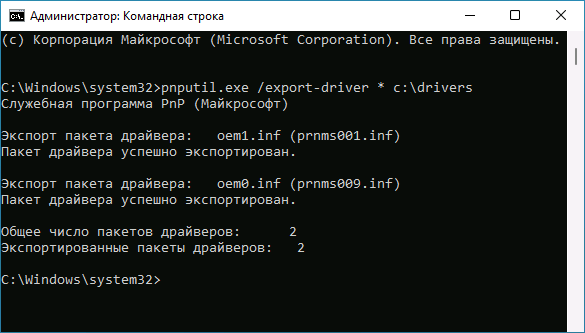 Останется дождаться завершения экспорта пакетов драйверов в указанную вами папку.