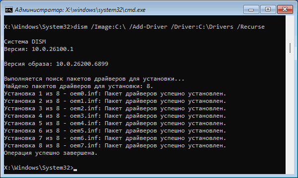- Выполните команду, указав за место C:\Drivers путь к своей папке с драйверами: