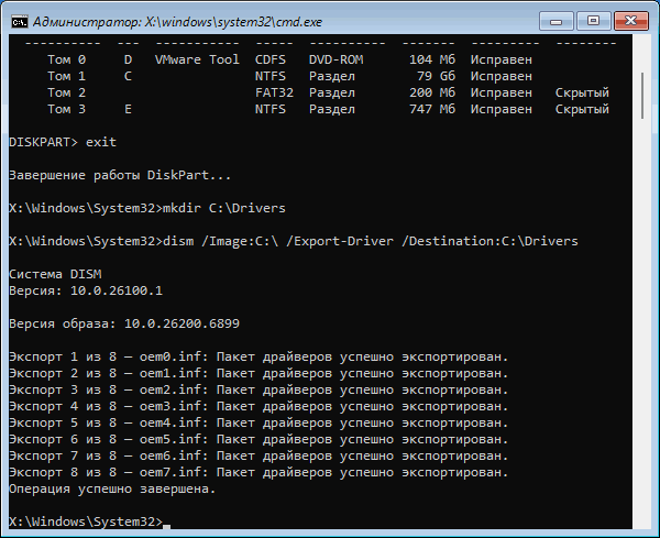 Экспорт драйверов в случае если Windows не запускается