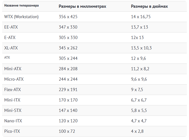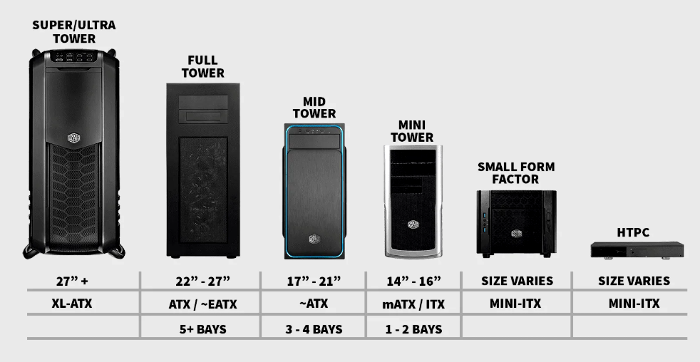 Существует разделение по размерам корпусов, которое используется во многих магазинах в параметрах корпуса и часто встречается в разговоре с компьютерными мастерами или любителями.