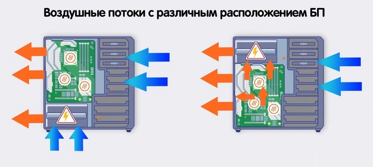 В просторных корпусах важно правильно организовать воздушные потоки. Поэтому перед выбором количества и расположения вентиляторов рекомендуется дополнительно изучить этот вопрос, чтобы обеспечить оптимальные условия охлаждения.
