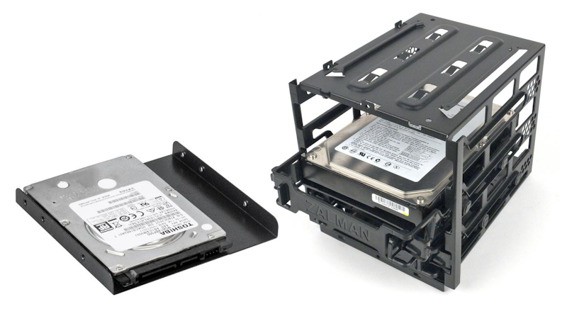 В корпусах для офисных нужд могут стоять поворотные корзины под накопители, что упрощает монтаж и демонтаж дисков.