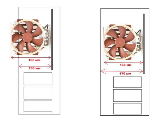 - Если кулер выше заявленного ограничения, крышка системного блока не закроется без усилий или вообще не закроется. Поэтому лучше выбрать кулер с небольшим запасом по высоте.
